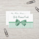 Mint and White Stripes With Girly Light Jade Bow Business Card
