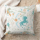 Mint Blue Coral Trendy Unicorn & Floral Pattern Cushion