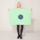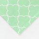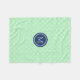 Custom monogram blanket in light pastel mint green, dark navy blue and white Moroccan quatrefoil lattice pattern.