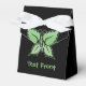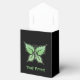 Butterfly icon composed of green mint leaves. Custom background colour. Custom text.