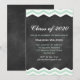 This trendy Graduation Invitation is on an illustrated chalkboard background and accented with mint green chevrons.