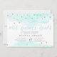 Chic quinceañera invitations in pastel mint green and grey feature sheer washes of light aqua watercolor at the top and bottom with faux gold glitter and "mis quince años" in seafoam green watercolor calligraphy lettering. Personalise with your quinceanera birthday party details beneath in elegant grey.