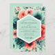 Experience a vibrant fusion of art and romance with this stunning botanical design. The composition showcases lush, painterly anemones and poppies in deep teal and vivid coral against a soft mint background. Delicate greenery weaves throughout the arrangement, creating a sophisticated and modern floral masterpiece for a beautiful matrimonial event.