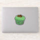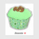Sticker featuring a Cupcake with green mint frosting topped with chocolate curls, in a decorative, green fractal cupcake wrapper