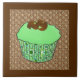 Ceramic tile - Cupcake with green mint frosting topped with chocolate curls, in a decorative, green fractal cupcake wrapper, on a brown and beige swirl patterned background