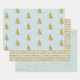 Mint Gold Christmas Tree Stripes Sparkle Wrapping Paper Sheet