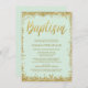 Mint Gold Faux Glitter Baptism Invitations