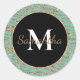 Mint Gold Faux Glitter Zebra Print Classic Round Sticker