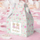 Send your baby shower guests home with this adorable and girly chic custom favour box, perfect for your tea party themed parties and events! The box is customisable, to edit the text click "personalise this template". This custom favour box features a mint green and gold rose and tea party themed pattern background and a hand drawn illustration of two teddy bears dressed in fancy dresses and sipping tea from cute pink tea cups. This makes for a fun and unique baby shower party favour and take home gift!