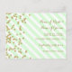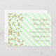 Elopement announcement postcards in light pastel mint green and white stripes pattern with gold confetti and handwritten style text, customisable with your names and wedding details, the perfect way to announce your elopement to friends and family. Available in a wide range of matching wedding products.