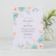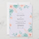 This design features a soft watercolor palette of mint green, peach, and pale lavender. Delicate echeveria succulents are paired with soft roses and airy leaf sprigs for an ethereal aesthetic. The romantic composition creates a serene and fresh atmosphere perfect for a seasonal event. These botanical elements offer a whimsical yet sophisticated touch.