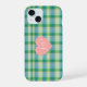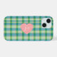 This phone case features a refreshing plaid pattern in a calm tone of mint green and blue. It combines a classic pattern with a modern color palette. The hand-drawn-like, warm texture adds a unique touch to the simple design.