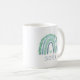 Cute boho rainbow illustration with a cute heart in mint-green and blue tones with a customisable name.