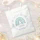Celebrate your little one's birthday with this cute boho rainbow illustration with a cute heart in mint-green and blue tones with a customisable name.