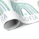 Cute boho rainbow illustration with a cute heart in mint-green and blue tones with a customisable name.