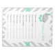 Mint Green and Grey Elephant Baby Shower Game - Wishes for Baby Notepad ready for you to personalise. ⭐This Product is 100% Customisable. Graphics and / or text can be added, deleted, moved, resized, changed around, rotated, etc... 99% of my designs in my store are done in layers. This makes it easy for you to resize and move the graphics and text around so that it will fit each product perfectly. ⭐ (Please be sure to resize, change, add, delete or move any graphics or text if needed before ordering) You can also "TRANSFER DESIGN" on other Zazzle products and adjust the design to fit most of Zazzle items. (button is down on the right side of the page) Some of the text graphics have ready to fill in the box(es) or you can Click on the "CUSTOMIZE" button to add, move, delete, resize, background colour or change any of the font or graphics. The design is made with high resolution vector and/or digital graphics for a professional print. ⭐NOTE: (THIS IS A PRINT. All zazzle product designs are "prints" unless otherwise stated under "About This Product" area) The design will be printed EXACTLY like you see it on the screen and on the product...so please make sure when you do your changes on the resizing of any of the graphics or text that it fits in the areas correctly and that your spelling and wording is how you like it to be in size, colour and font. If you have any questions about the "DESIGN ONLY" or need help please contact me at siggyscott@comcast.net or visit my store link: https://www.zazzle.com/store/designsbydonnasiggy (Copy and Paste) I'll be happy to help. ⭐ All other questions (shipping, refund, the printing, the product, etc...) please contact Zazzle or the Maker ⭐DIRECTLY⭐. Thank you for the support and stopping by my store - DesignsbyDonnaSiggy. © Donna Siegrist ⭐⭐⭐ ZAZZLE promises 100% satisfaction.