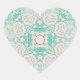 Mint Green and Ivory Embossed Damask Pattern Heart Sticker