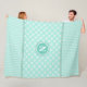 Mint Green And White Stripes And Daisies Monogram Fleece Blanket