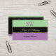 Make a lasting impression with this stylish business card design featuring mint green, black and lavender coloured stripes with pretty shimmery small gold decor.