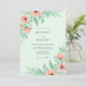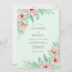 This design features a refreshing mint green background adorned with soft watercolor peach anemones. Delicate sage green leaves and berries create a lush, airy aesthetic perfect for a seasonal spring event. The romantic color palette evokes a sense of serenity and natural beauty. These artistic floral elements wrap gracefully around the composition.