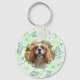 A soft mint green flower wreath frames your Cavalier King Charles Spaniel silhouette on this customizable keychain. Customize the silhouette side with your pet's name for a unique keepsake. A custom photo on the back makes it a heartfelt gift for any dog lover. Ideal for thoughtful gifts, daily carry, or pet-loving friends. Floral details create a charming and stylish look.