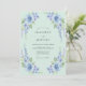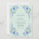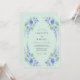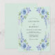 This design features a soft mint green palette adorned with delicate sky blue roses and cascading lavender delphiniums. The airy watercolor aesthetic creates a serene and romantic mood perfect for a seasonal event. Lush botanical elements and verdant foliage cluster along the corners for a fresh, natural feel.