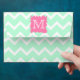Mint Green Chevron Monogram Design with Pink Splat Envelope