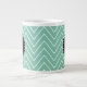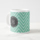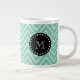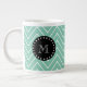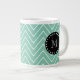 Mint Green Chevron Pattern | Black Monogram Large Coffee Mug