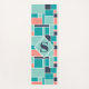 A bold and fresh geometric design with squares and rectangles in different shades of mint and teal green, coral pink, and dark blue. The monogram sits prominently in the middle on a light teal-coloured diamond. Personalise the yoga mat and make it uniquely yours. You can change the colour of the diamond and monogram if you want a more contrasting look.