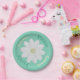 Cute mint green paper plates with a bold daisy flower. Perfect for summer picnics and birthday celebrations