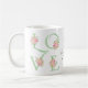 Mint green floral Love typography roses and message Valentines Day mug. This elegant design features the word "LOVE" in a decorative relief font in mint green with a bouquet of pink roses on both sides and your message.