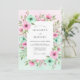 Soft hues of mint and rose mingle with delicate pink blossoms and lush greenery. This design evokes a tender, romantic atmosphere, perfect for a whimsical celebration. The airy watercolor style adds a touch of ethereal beauty.