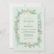 This design features a soft mint green backdrop complemented by a lush watercolor floral border. Delicate pink roses and light blue blossoms are paired with silver dollar eucalyptus and sage foliage. The overall aesthetic is romantic and airy, making it a perfect choice for a seasonal spring event.