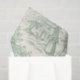 This elegant mint green toile pattern tissue paper captures a pastoral countryside scene framed by intricate floral garlands and foliage. The design depicts a vintage farmhouse and a woman in traditional attire, surrounded by trees and open fields, rendered in classic toile de Jouy style. The soft sage tones against a cream background evoke a serene and nostalgic mood. A timeless celebration of rural charm and French country elegance.