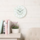 Mint Green Gingham Check and Polka Dot Numbers Large Clock