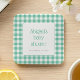 Mint Green Gingham Check Rustic Baby Shower Square Paper Coaster