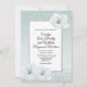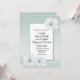 Modern glitter looking wedding invitation done in a mint green, with a glittery framed white text area and beautiful graphics of white flowers in two corners.. Personalise all the text, for your special day. Matching products are available.