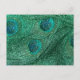 mint green glitter peacock feathers postcard