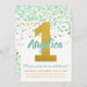 Mint Green Gold 1st Birthday Confetti Birthday Invitation