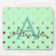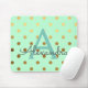 Mint Green and Gold Foil Polka Dots Monogram Name Monogram Mousepad. This Mouse pad can be customised to include your first name and intital.