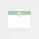 Mint Green Grey Chevron Patterned Monogrammed Post-it Notes