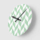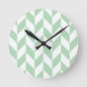 Mint Green Herringbone Pattern Round Clock
