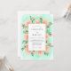 This design features a soft mint green watercolor background that beautifully complements the blooming peach roses. Delicate green foliage and buds are scattered throughout, creating a fresh and ethereal aesthetic. The watercolor textures provide a romantic and artistic feel, ideal for a refined spring or summer ceremony.