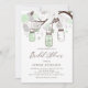 Invite guests to your event with this customisable bridal shower invitation. It features whimsical mint green mason jars, heartstrings, and flowers. Personalise this mason jar bridal shower invitation by adding your details. This custom bridal shower invitation is perfect for spring and winter showers. It is available in other colours and cardstock.