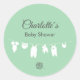 Add a sweet and personalised touch to your baby shower with this minimalist sticker. This charming round label features a soft mint green background with a cute clothesline and little baby outfits. This sticker is part of the Minimalist Clothesline Baby Shower collection, making it easy to find matching products and create a beautifully coordinated and unforgettable event.
