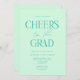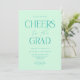 Set the tone by inviting guests with "Cheers to the Grad" party invitations that cheerfulness and fun. Modern typography paired with minimalist design in mint green and turquoise. Personalise with year, name, and party details. © Kimbellished, LLC