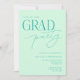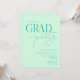 Set the tone by inviting guests with grad party invitations that exude cheerfulness and fun. Modern typography paired with minimalist design in mint green with turquoise text. Personalise with year, name, and party details. © Kimbellished, LLC