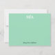 A pale mint background, a 3 letter monogram and a script signature, an elegant trendy note card.