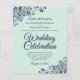 These affordable, budget friendly wedding invitations are the perfect choice for class, style, and beauty on a budget. The design features navy blue floral lace frills in the corners on a light neo mint green coloured background. The typography includes fancy script lettering for a style that is at once simple and elegant. Wonderful way to invite your friends and family to share in your joy on your special day without breaking the bank.