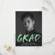 Invite guests to celebrate the guests with our Modern Paint Splatter photo graduation party invites. The design features the graduate's vertical photo with "Grad" in mint green lettering with white paint splatters. Personalize the front of the creative graduation party invitations by adding the graduate's name, school name, and graduation year. The back of the graduation party postcard features your return address and party details. The design is perfect to use for both high school and college graduates.